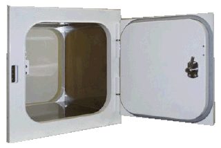 Передаточные окна КЧП.КМ.070, КЧП.КМ.071, КЧП.КМ.072 и КЧП.КМ.073Створки передаточного окна изготавливаются из профиля, которые при установке в проём образуют герметичный замкнутый шлюз и не допускают перетока воздуха из одного помещения в другое. Система оповещения световой или звуковой предупредительной сигнализации – на случай одновременного открывания более чем одной створки. Комплектация передаточных окон: